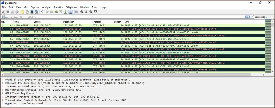 Up to 10 filters can be defined based on various parameters in the protocol layers. As an example, GTP is configured in the below figure.
