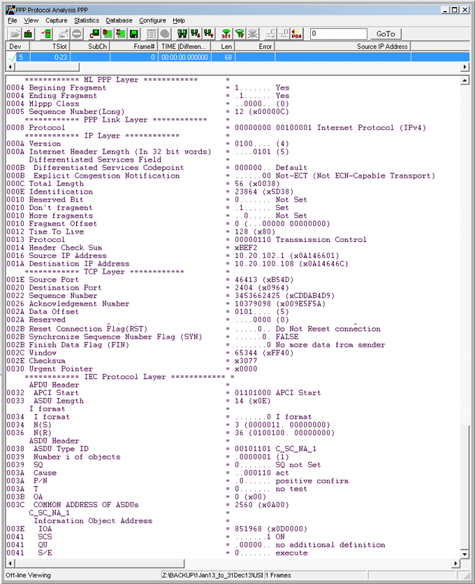 A user can obtain detail analysis of the protocol and can perform various statistics measurements. PPP analyzer also supports Packet Data Analysis module (requires additional license) to perform detail analysis of PPP packets over IP and segregates them into SIP / H323 / Megaco / MGCP / T.38 Fax/ GSMA / IuCS calls.